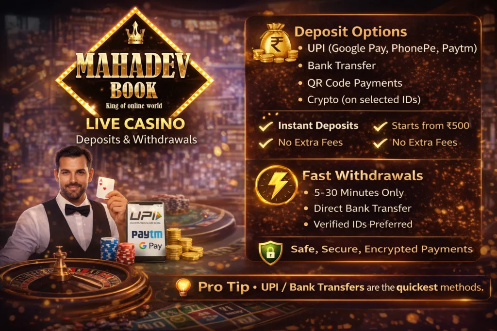 One of the most important factors for any online casino player is fast and secure payments, and Mahadev Book Live Casino performs strongly in this area. The platform supports multiple trusted payment methods, making it easy for Indian users to deposit and withdraw money without hassle.